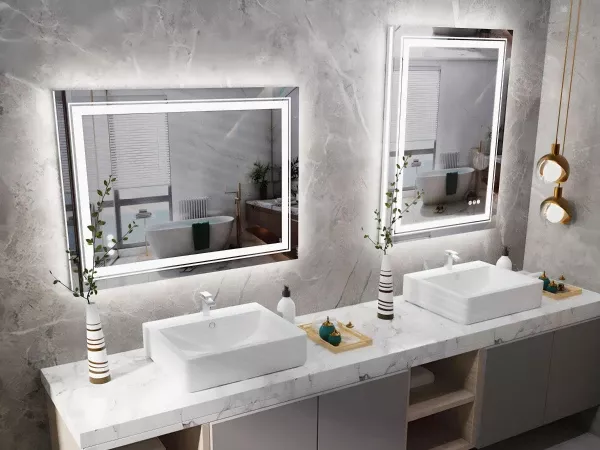 Introducing our state-of-the-art Waterproof Double Sink Mirror, a perfect blend of sophistication and functionality for your bathroom or dressing area. With its expansive full-length design and modern lighting, this mirror provides an unmatched clarity that is essential for your daily grooming and dressing needs. Crafted to create an atmosphere of luxury, it enhances your space with a luminous glow and a touch of modernity.