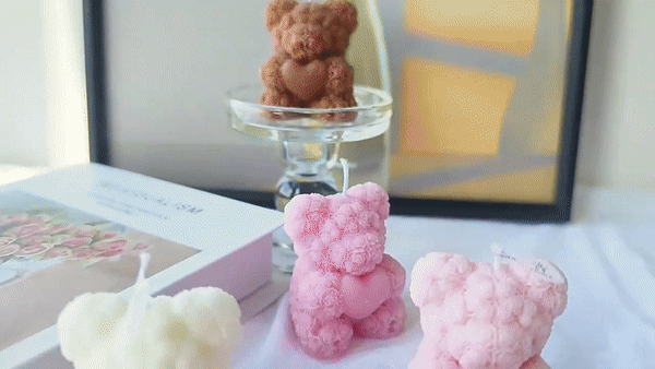 Order now and experience the blend of artistry and ambiance that our Charming 3D Rose Bear Candle offers!