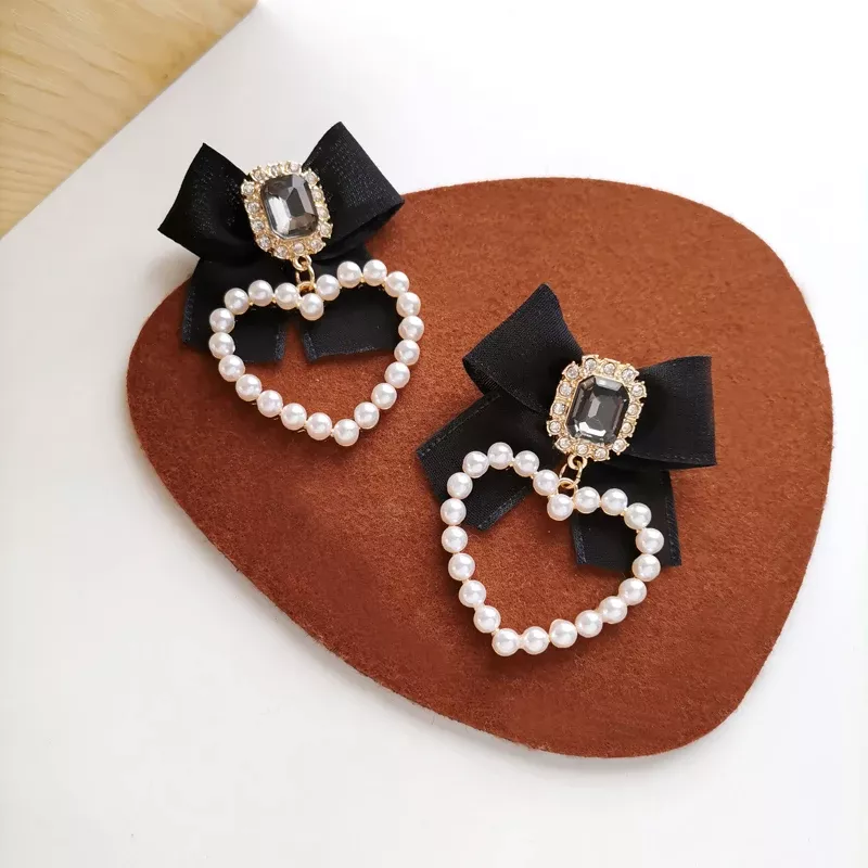 The combination of the S925 needle, black bowknot, and heart-shaped drop with crystal glass and simulated pearls sets these earrings apart. This exquisite mix of materials creates a look that is both classic and on-trend. The high-quality materials ensure that these earrings are not only beautiful but also long-lasting, making them a valuable addition to your jewelry collection.