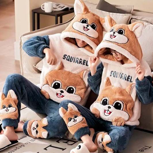 Made from premium coral fleece and soft cotton, this pajama set promises ultimate comfort and durability. The full-length design ensures complete warmth from head to toe, while the hooded collar adds an extra layer of coziness. The adorable animal designs bring a touch of whimsy and fun to your bedtime routine, perfect for those who love a bit of playfulness in their wardrobe.
