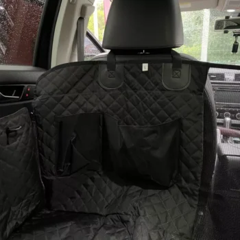 This dog cover is great! It fits exactly and the clips are really strong. Its adjustable so my dog wouldn't be able to pull it down!. The bottom is made from special rubber so the dog dont slip during driving.