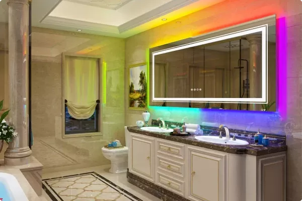 This LED Vanity Mirror stands out for its sleek design, advanced features, and ease of use. Its versatility in light modes makes it ideal for various activities like applying makeup, shaving, or simply admiring your reflection. The RGB backlight adds a contemporary flair to any bathroom, making it not just a mirror but a statement piece. With over 10 years of experience in crafting superior quality mirrors, we assure reliability and durability in every product.