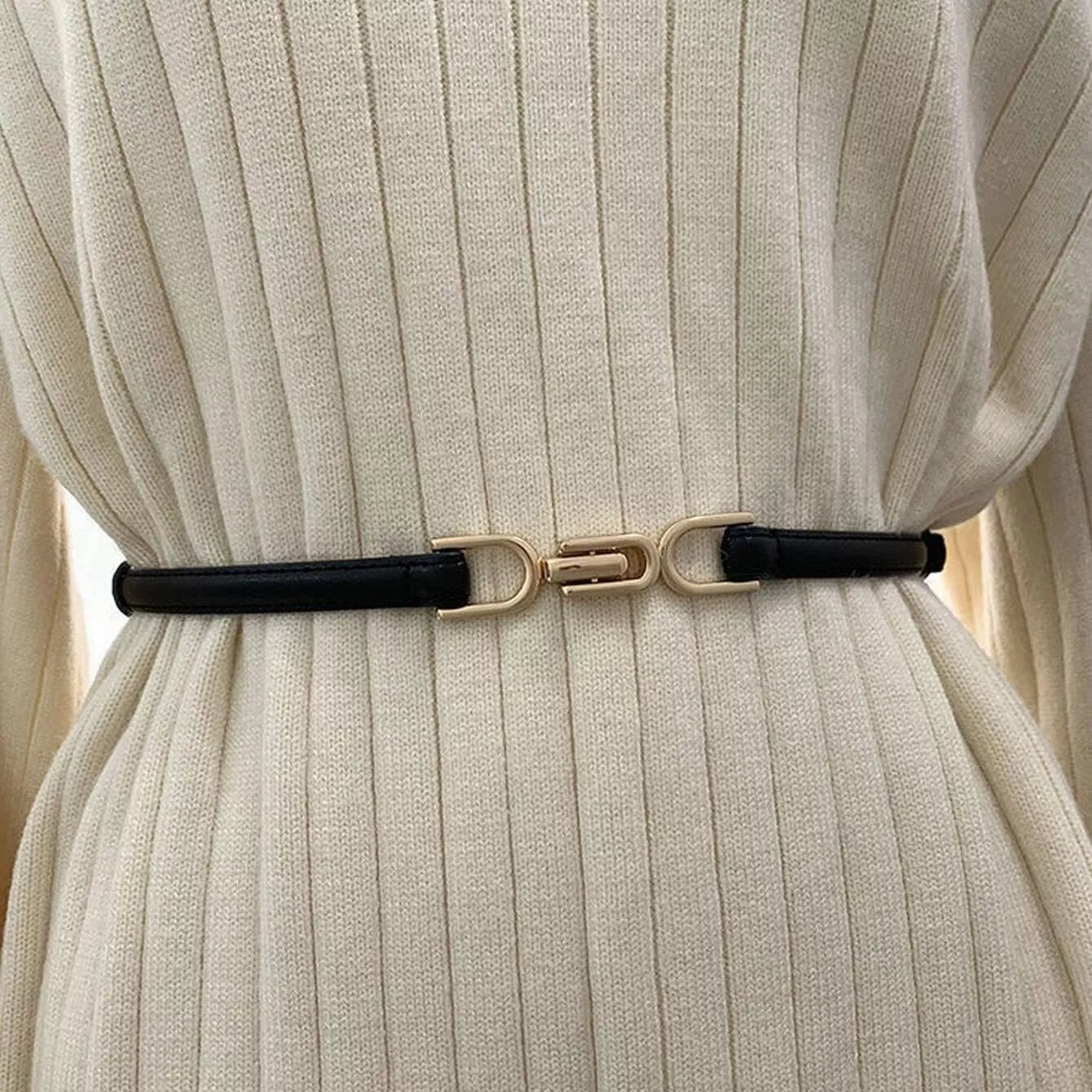 • Elegant Gold Buckle: The shining gold color buckle adds a touch of sophistication and elegance to your outfit.