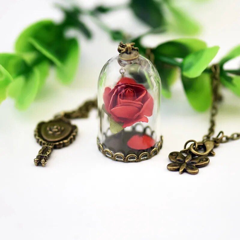 Step into a world of enchantment and timeless romance with our Enchanted Rose Terrarium Pendant. Inspired by the classic fairy tale ‘Beauty and the Beast’, this exquisite piece of jewelry is more than just an accessory – it’s a symbol of love’s enduring power. Its intricate design and whimsical charm make it the perfect gift for your significant other, marking any anniversary with a touch of magic.