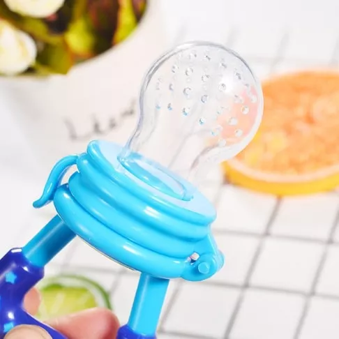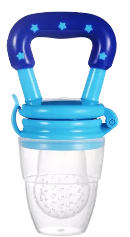 So I saw the mesh screen feeders & thought that would be neat until I wondered how they'd be cleaned... Someone had given me one as their little one out grew the need for it, and as I suspected, it was yucky! I threw it out & went on the hunt for something better. I came across these silicone fruit feeders & I loved them as much as our little one did! There were different sizes (and the nipple parts are interchangeable so you can stick with a favorite color if you'd like) and you can make sure the feeders actually get cleaned! It might be a tad tricky to get into the smaller size without brushes & such, but it's well worth it. I'm sure that pending the foods you put into the nipples, it may change the color of the nipples. We noticed that over a few uses the size we favored had a yellowish tint to it. Really these feeders were just right for us. Peace of mind for us & our increasingly independent little one got to eat lots of yummy foods on his own!