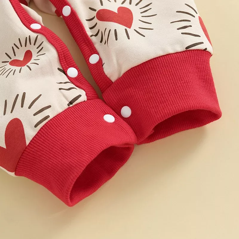 This romper isn’t just for Valentine’s Day – its timeless design and comfortable fit make it suitable for everyday wear, photo shoots, family gatherings, and more. Whether you’re staying in for cuddles or heading out for a stroller adventure, your baby will always look their best.