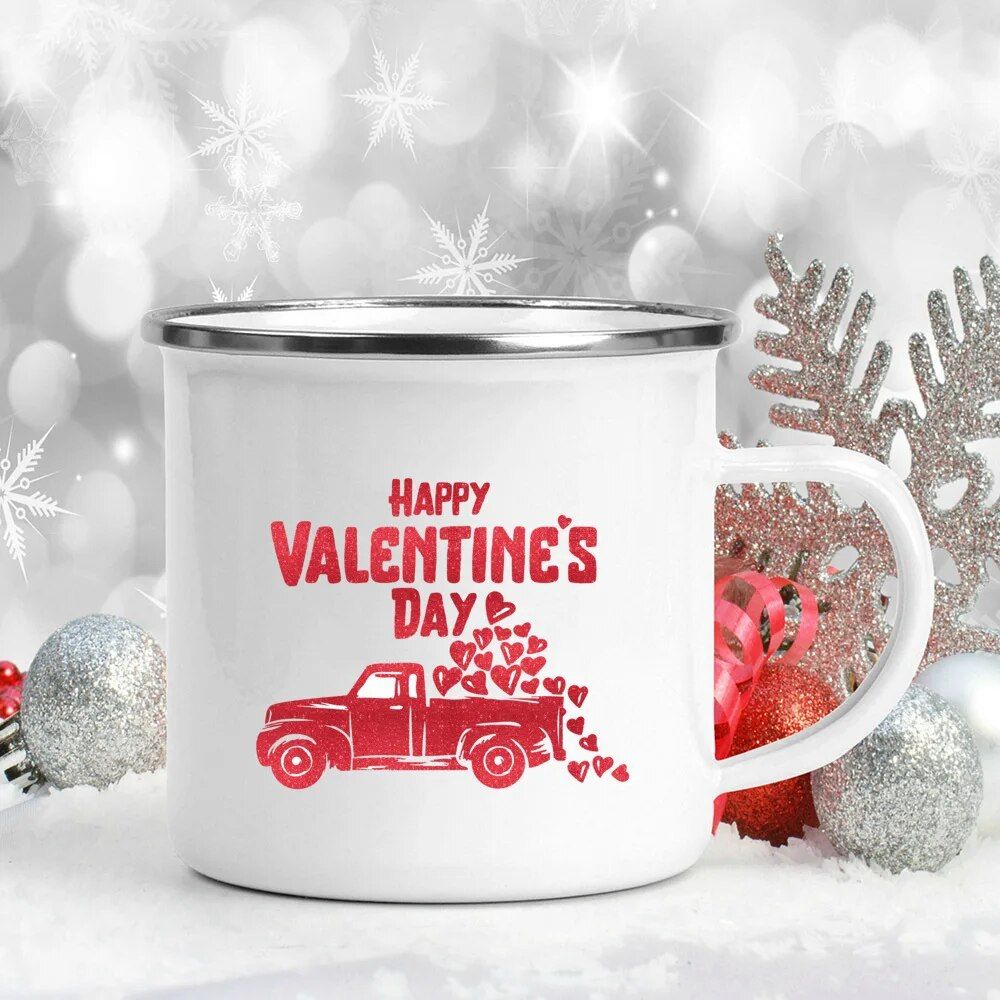 Love Heart Printed Camping Mug Valentine Party Juice Milk Cup Coffee Cups Enamel Mugs Valentine's Day Gifts for Family Friends