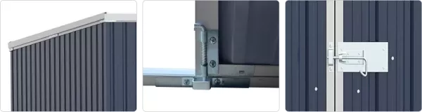 This outdoor steel shed is versatile, perfect for anyone needing extra storage space. It’s ideal for gardening enthusiasts needing a secure place for tools, families looking to store outdoor toys and pool equipment, or anyone requiring additional space for outdoor gear. Its robust construction makes it suitable for use in all seasons, providing a reliable storage solution year-round.