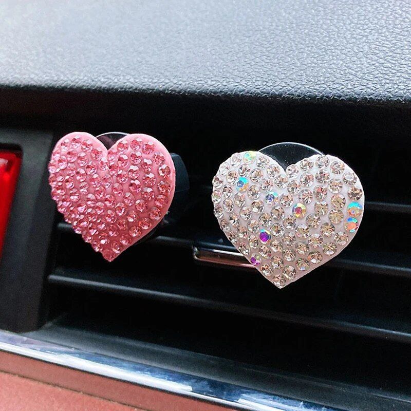 Sparkling Heart-Shaped Car Air Freshener Clip with Rhinestones