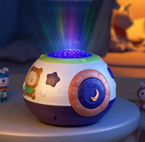 My baby just loves staring at the colorful twinkling stars and moon projected on to the roof. Some reviewers mentioned the quality of plastic is cheap and not strong enough - but I completely disagree. It is sturdy enough and does the job perfectly - unless you leave it in-front of the kid and ask them to break it.