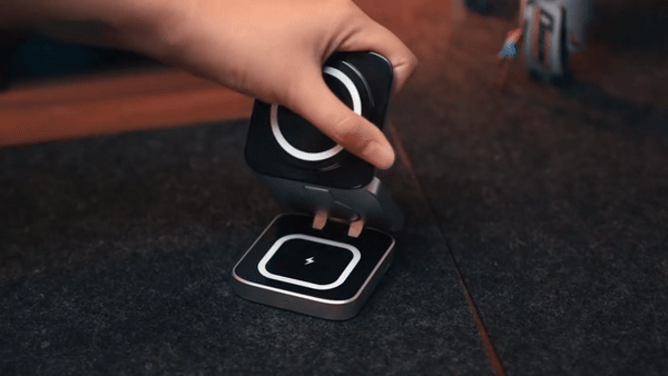 This charger is compact and great for travel. It charges my phone and watch effectively. The phone magnet is quite strong, ensuring the phone stays in place, while the watch magnet is a bit weaker. However, the design still secures the watch for charging. It's not the fastest charger, but it's efficient enough to charge a large iPhone overnight.